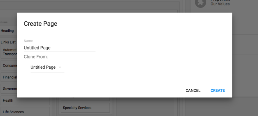 To create a Static Page, click on the "+ Create Page" at the bottom of the menu of the Layout & Design tool: