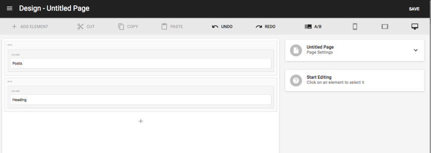 If you choose 'blank page', you will start with only the Top Bar, Footer and a Row with a Column inside of it:
