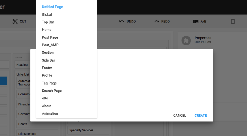 - Static Page Source: you can either choose to start from a blank layout, like this: