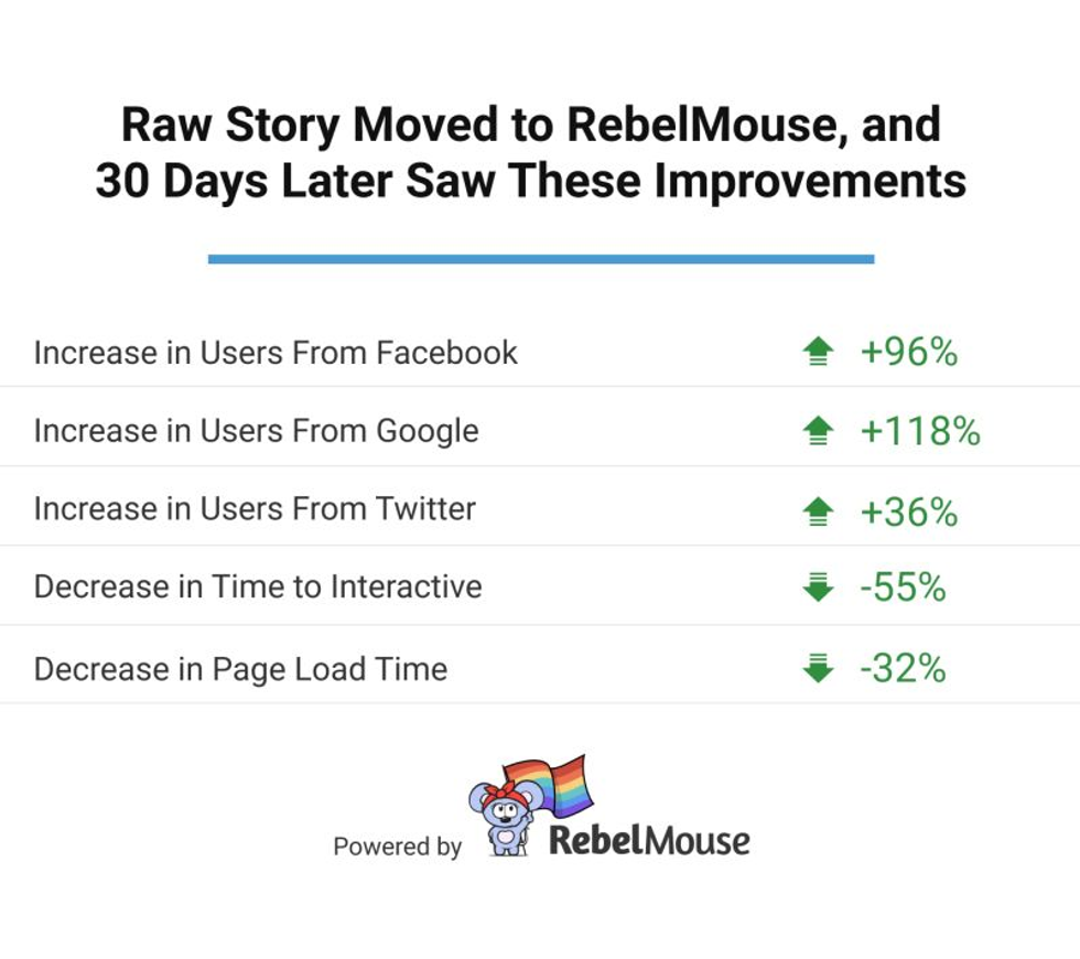 Beloved internet treasure Raw Story made the RebelMouse switch. This was the impact on their traffic 30 days later: