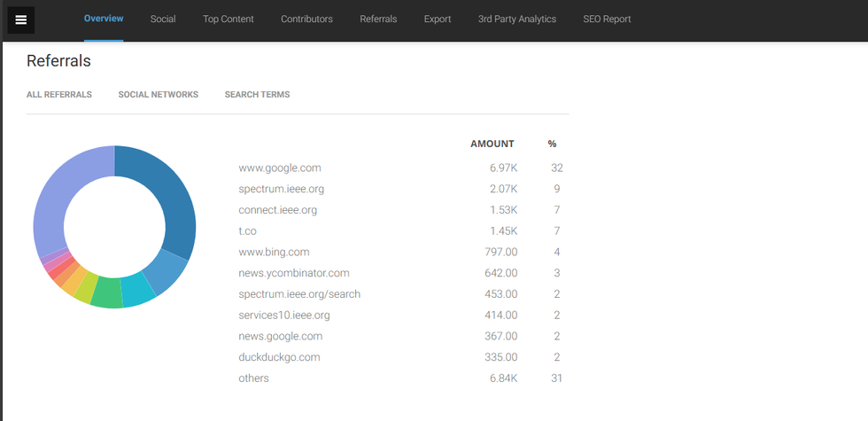 - Amount: The total number of page views generated by referral source or search term