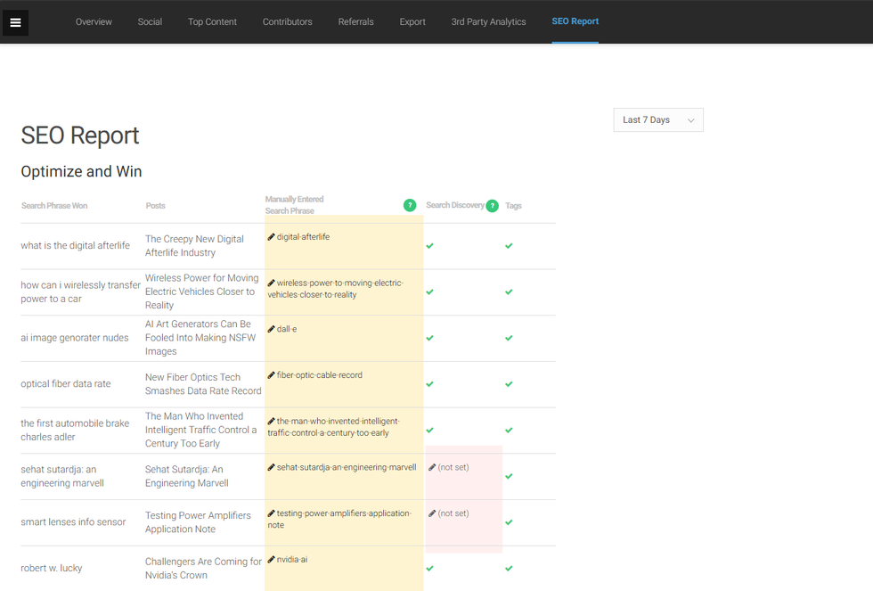 - Search Phrase Won: The search phrases that drive the most traffic to the post