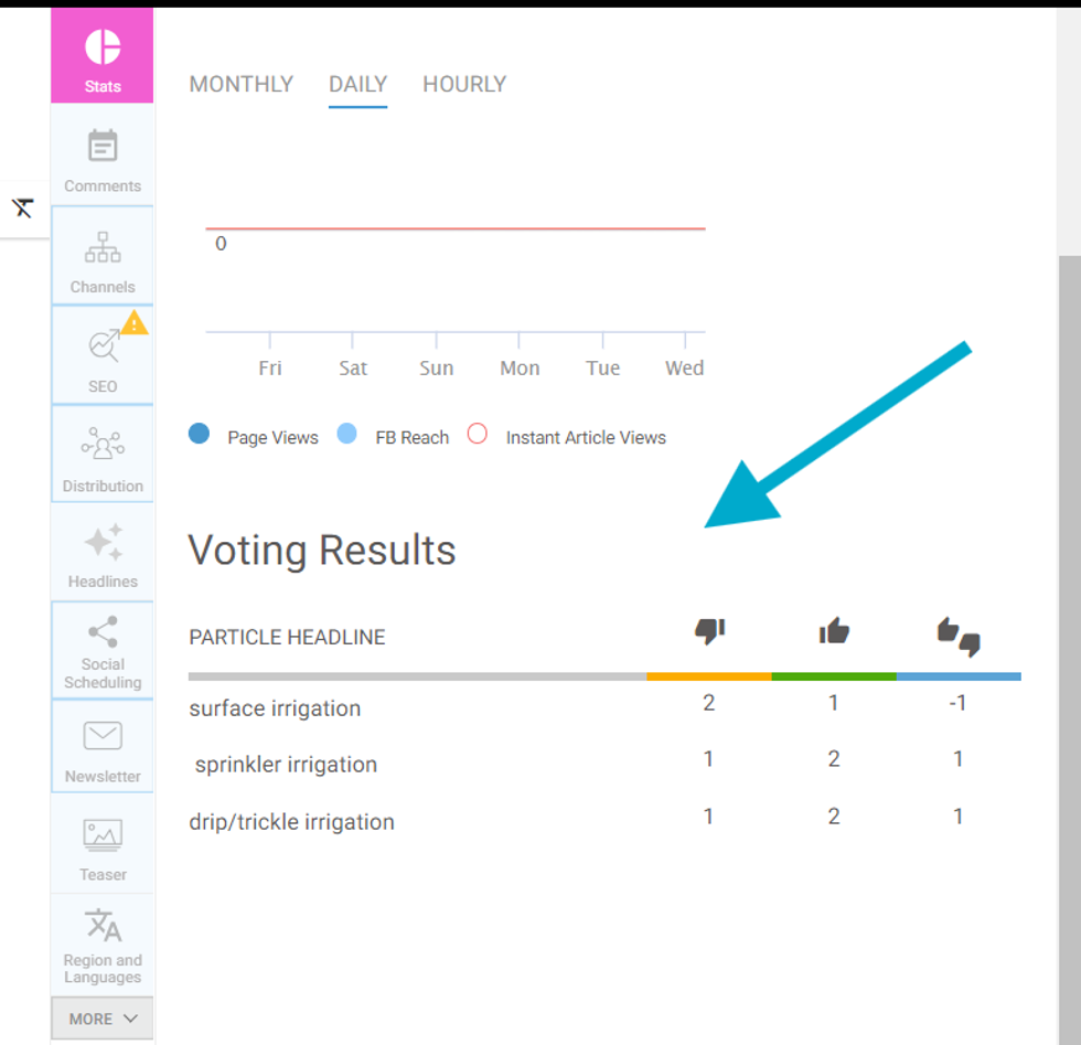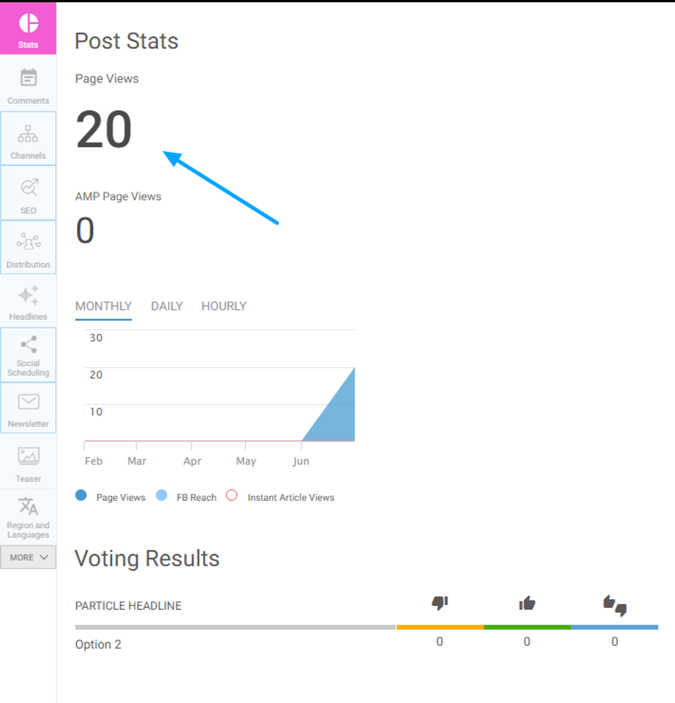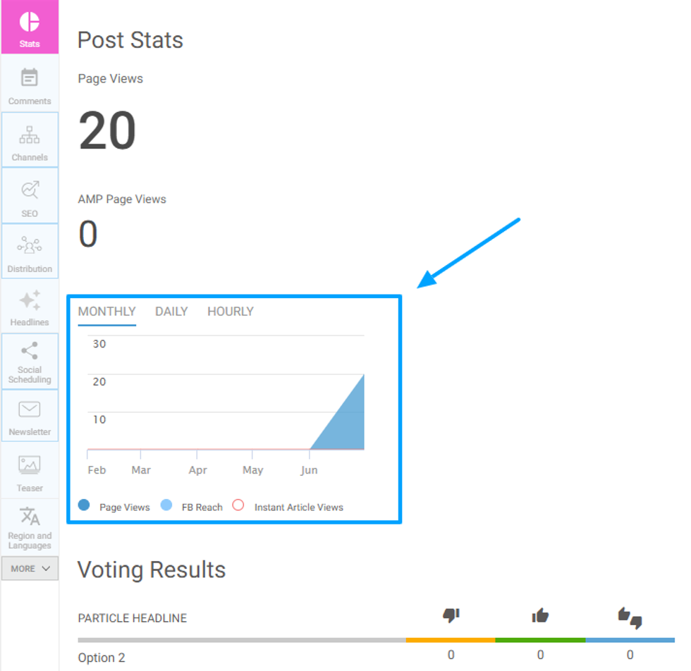 If your post has a voting particle, the interactions with the voting feature will also show on the Stats page. It will be separated into: