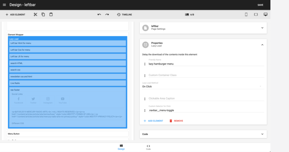 2. Lazy Load: Use the Lazy Load element in our Layout & Design tool whenever possible. This feature loads a page's elements only when they're needed by a user instead of all at once. For example, it's common to lazy load a sidebar because it's typically not the primary element on a page.