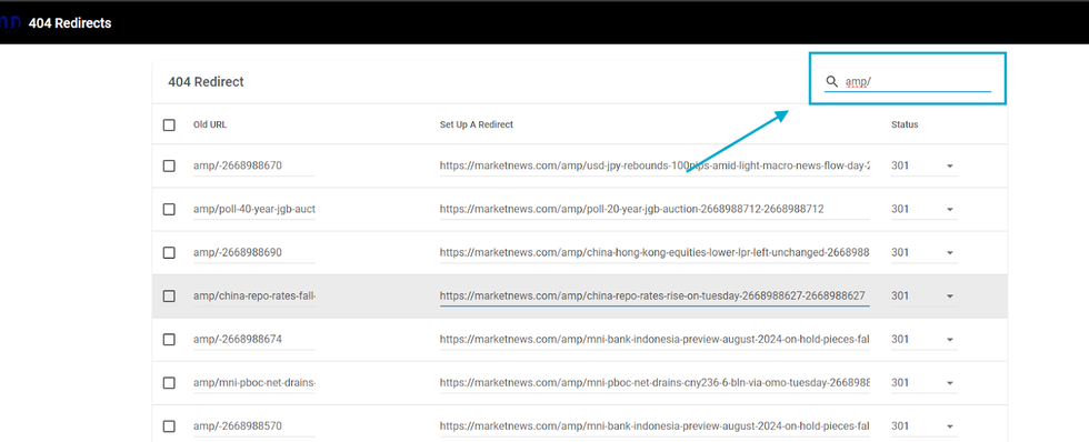 For example, if you search for amp, the search will show you results that have the amp on the Old URL first, then results that have the amp on the Redirects.