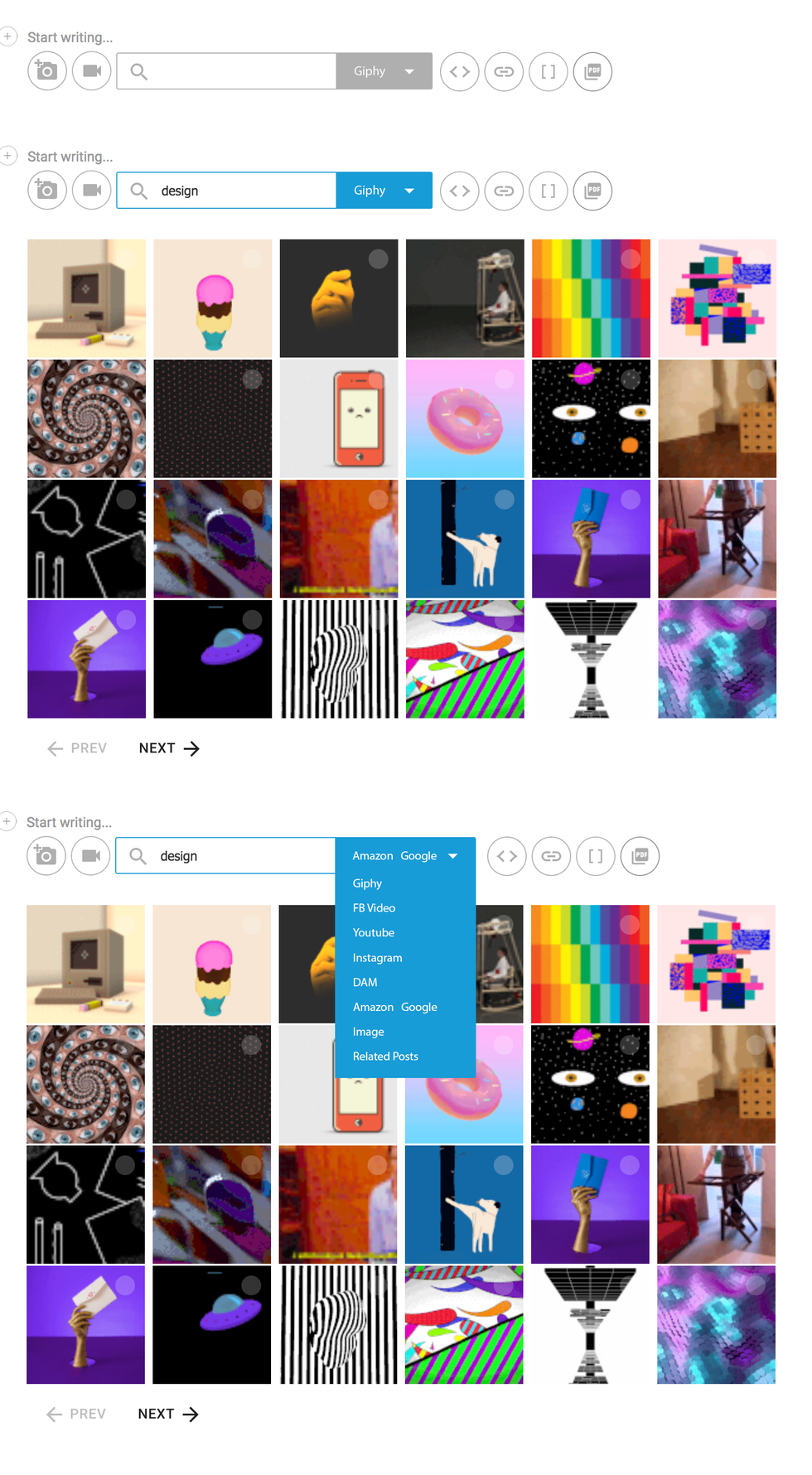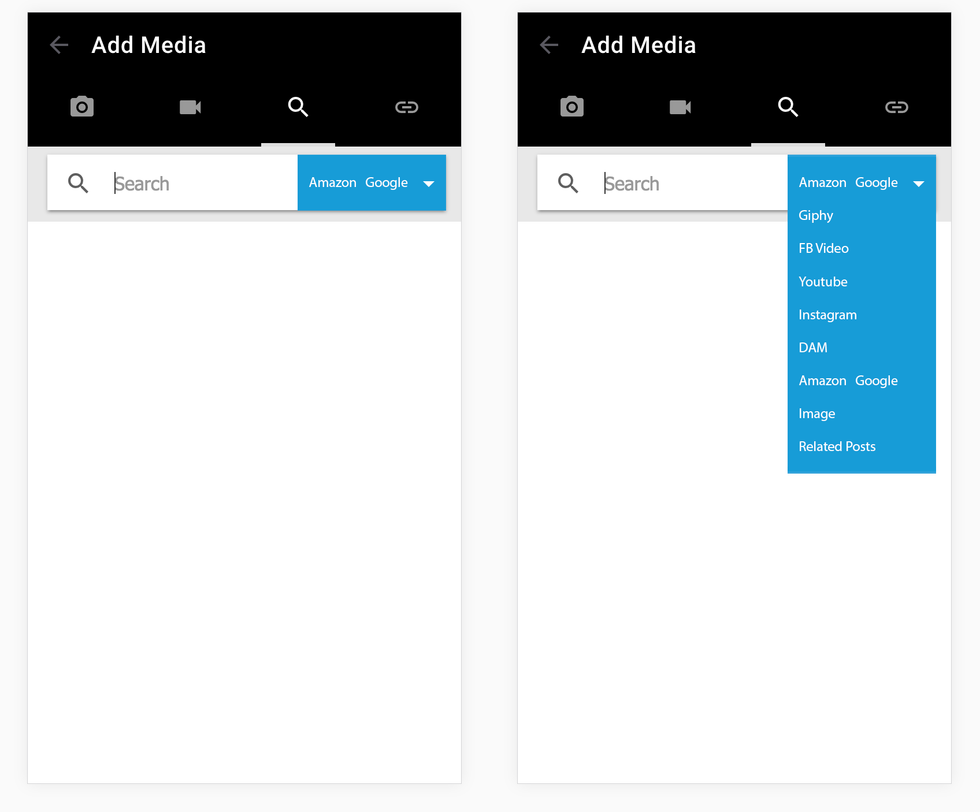 As we've been adding more and more cool integrations into our Add Media Bar, we realized that we had to revamp how the tabs for it work. It was starting to get crowded and harder to manage on mobile, especially.