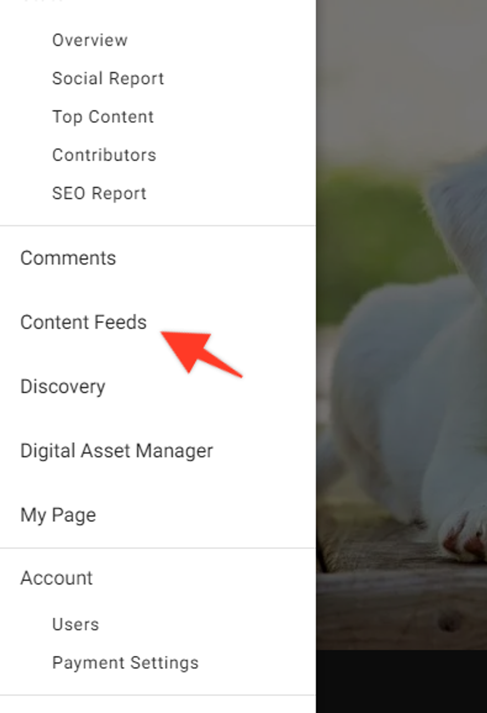First, click on the hamburger menu (☰) and then click on Content Feeds.