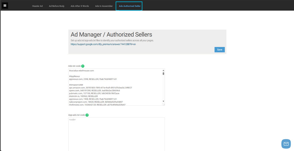 - RebelMouse will create a URL ending in /ads.txt, where you can view the list of your authorized digital sellers.
