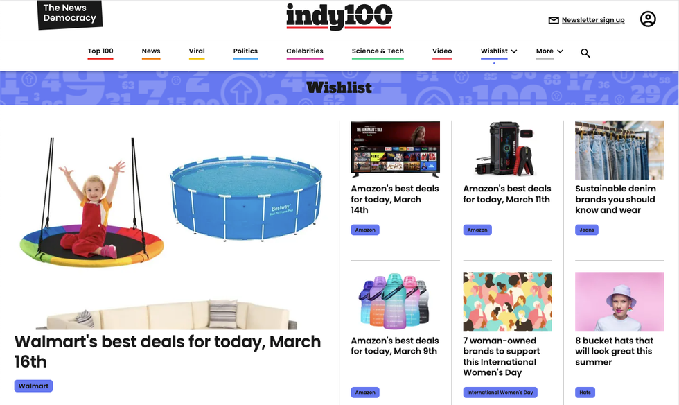 Here’s an example from indy100, powered by RebelMouse. The site’s Wishlist section is full of product roundups of all kinds, featuring products through partnerships with Amazon and Walmart.