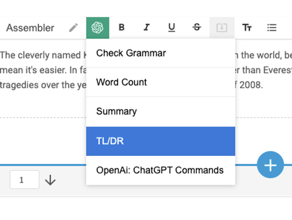 As an example, a prompt we created called “TL/DR” will create a three-sentence summary of an entire article. This can be great for having an introductory blurb that can help users decide if the information in the article is going to be of interest to them. This example is only the tip of the iceberg. With the correct usage of prompts for the AI, you can build any number of custom commands.