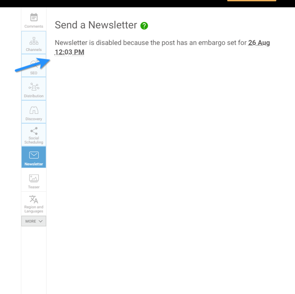 One of those features is the ability to embargo any article. The Embargo setting prevents an article from being published until a particular date and time.