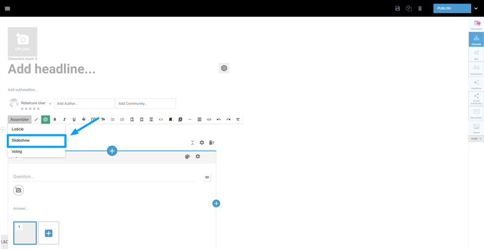 The Slideshow is accessible via one simple click in the formatting toolbar on the Assembler option of Entry Editor.