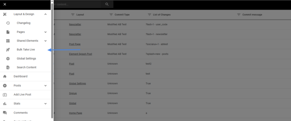 When deploying a B-Test, any user with proper permission to access Layout and Design can follow the steps below to do it.