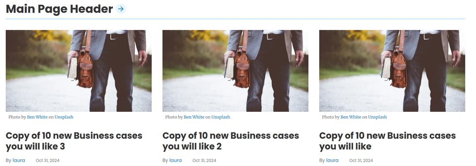 The Component below, called Three Components in a Row, is composed of a Heading Component and a Standard Post Component. This setup allows you to quickly structure sections with a heading followed by a standard post layout, all within a single reusable Component.