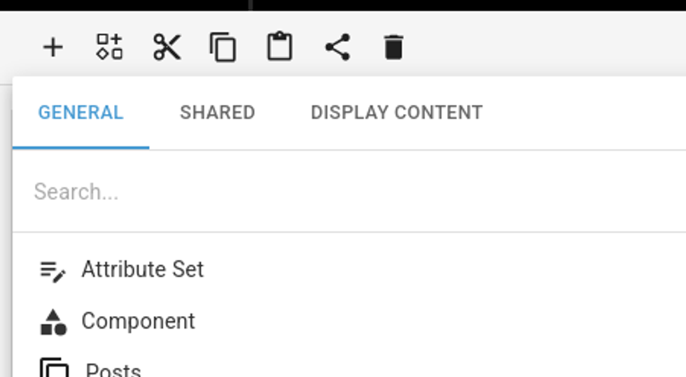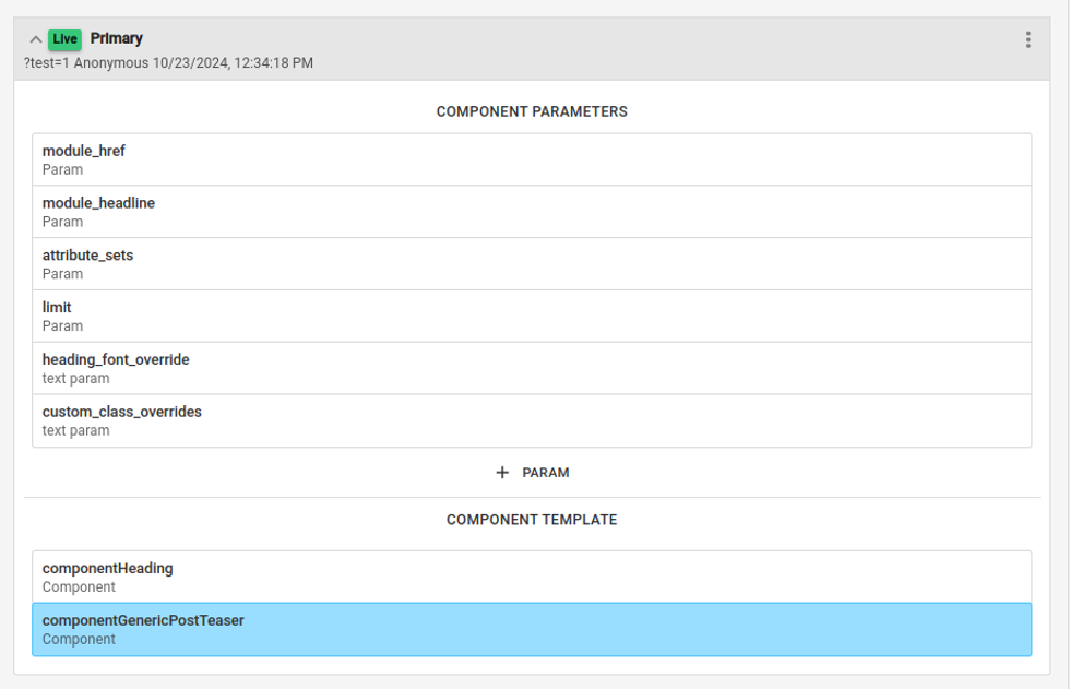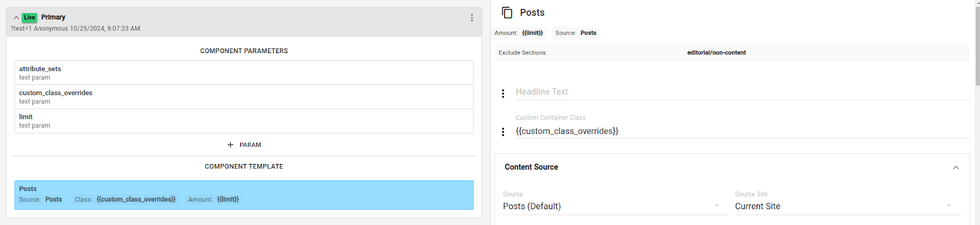 When using Components that include Attribute Sets, you can define the specific values for each parameter, customizing how the content will be sourced and displayed.