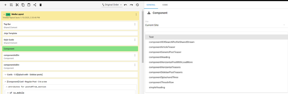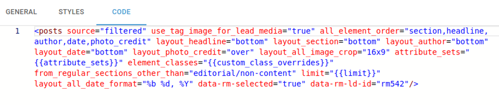 In the Code area, you can apply parameters like limit and attribute_sets directly to control the content displayed by the Component. Currently, these settings are configured within the Code area, but soon they’ll be available in the General section of