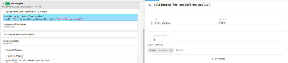 In the example below, Attribute Sets allow you to display a different number of posts based on device size. For instance, you might show more posts on desktop and fewer on mobile for optimal layout and readability.