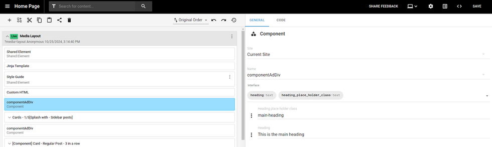 - In the example below, we added this Component (componentAdDiv) to the Homepage.