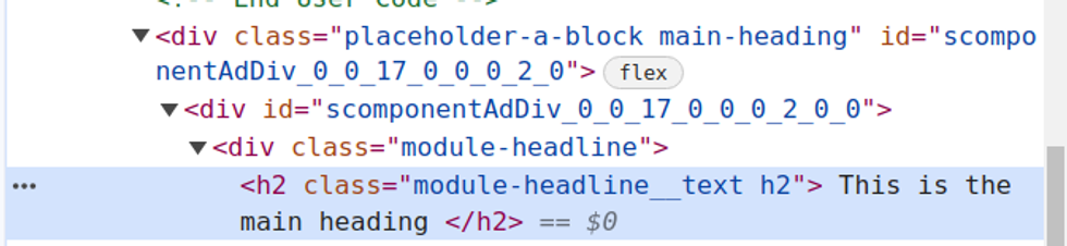 For this specific case, we assigned main-heading as a CSS class and set the text to "This is the main heading."