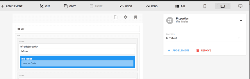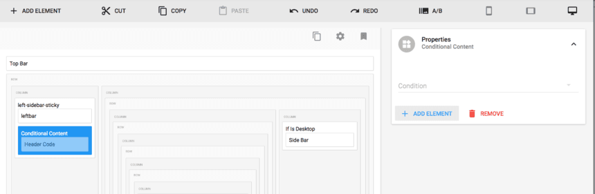 By inserting an element you want specific control over inside of the Conditional Content element, you can create different experiences for mobile, tablet, and desktop users.