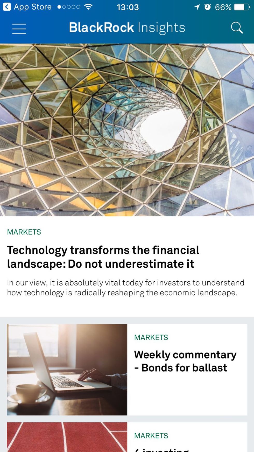 BlackRock worked with RebelMouse on a simplified app that meets the needs of the financial industry. RebelMouse native apps provided BlackRock with a way to provide personalized news to investors based on the country they live in. The apps were optimized and available for mobile and tablet. The BlackRock app also leveraged the benefits of core offline caching technology to enable easy reading for users.