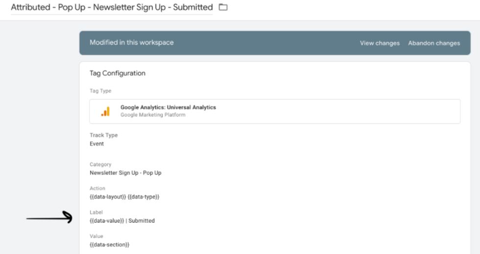 And here you can see how a tag is configured to track the data: