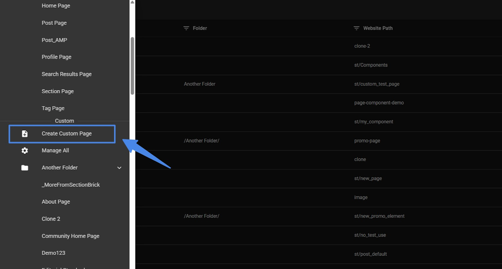 Step 1: Click “Create Custom Page” in the menu.