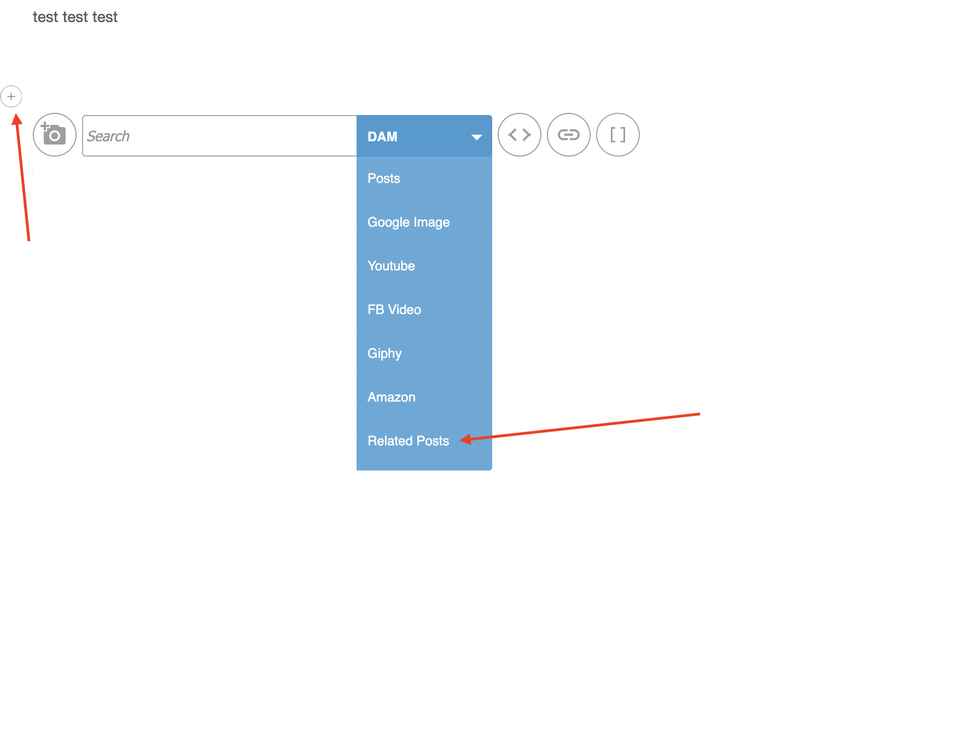 To add Related Posts to your post, use our Add Media Bar and search for Related Posts:
