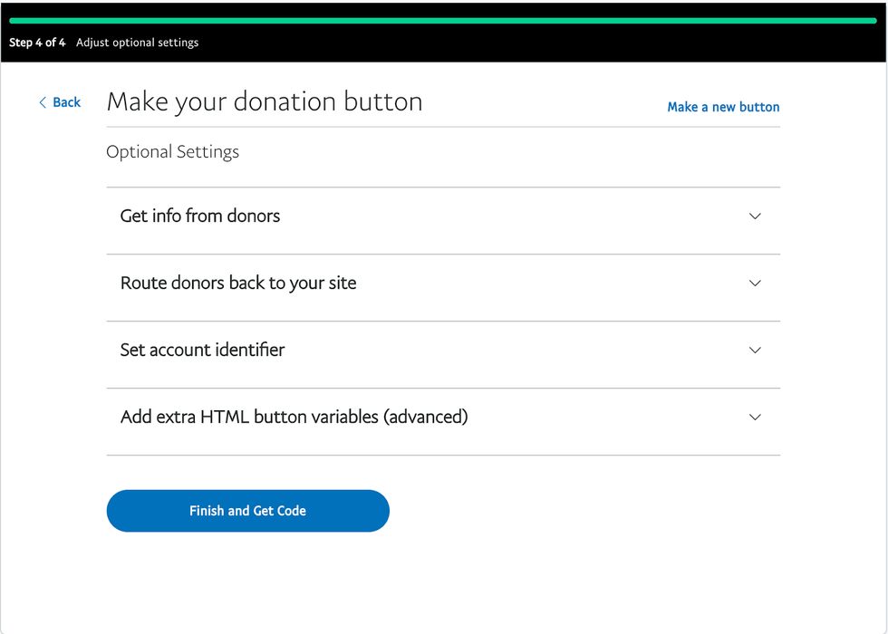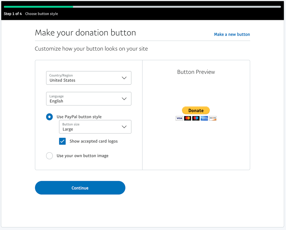 Click Continue again to customize what users are able to donate: