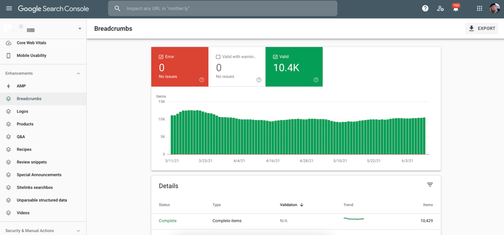 When implemented correctly, breadcrumbs can be seen as an enhancement in Google Search Console: