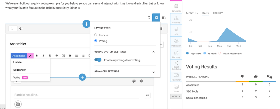 We've even built out a quick voting example for you below, so you can see and interact with it as it would exist live. Let us know what your favorite feature in the RebelMouse Entry Editor is!