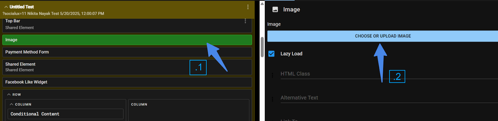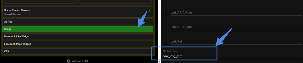 The image element now supports the configurable attribute_sets field. Select the image and scroll to the “Attribute Sets” field at the bottom. Enter the desired set name, and it can be used across other elements.