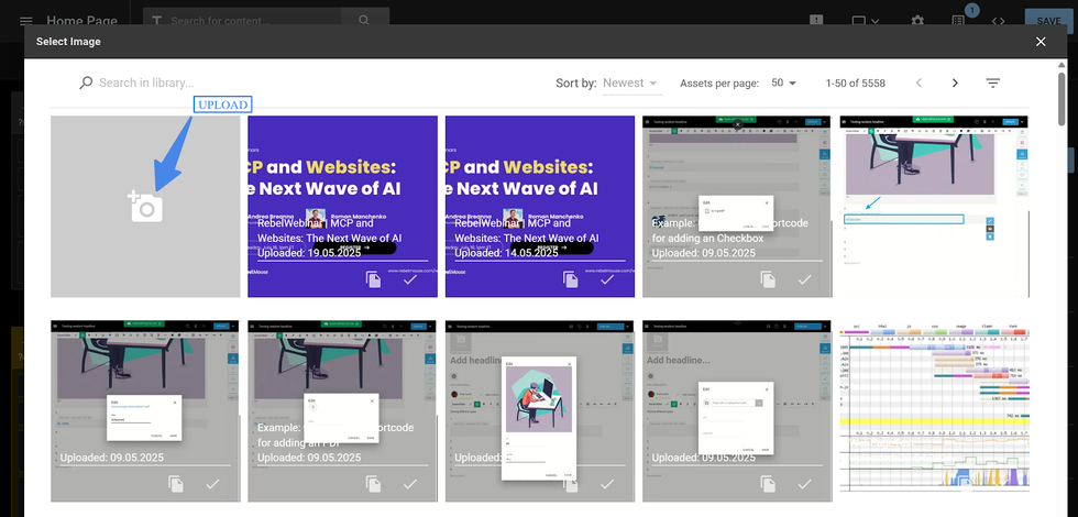 3. A window will open displaying the Media Library where you can upload an image