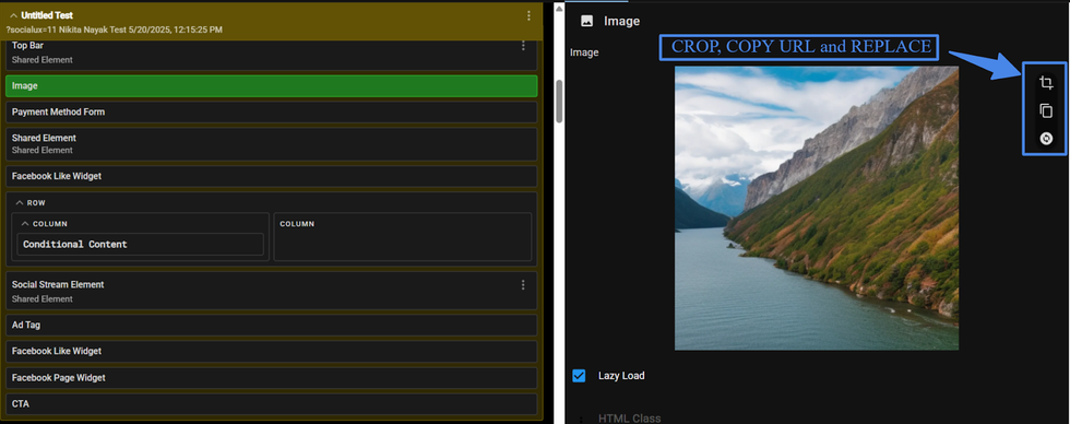 L&D's Image Element now allows selecting images from the library, cropping them, and adding custom crops.