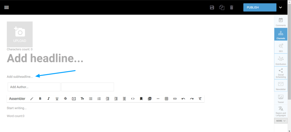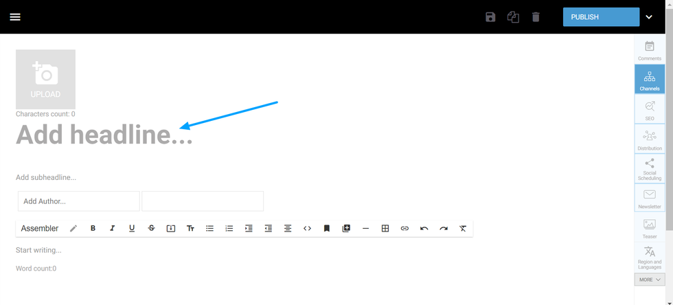 A phrase must be added to indicate the nature of your article, and you can click on Add a Headline to add one to your post. After saving your draft, the Entry Editor will automatically add a URL slug from your headline to personalize the URL for your article.