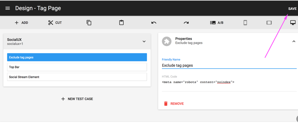 - Go to 'Tag Page'