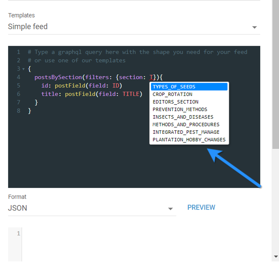 The Feed Builder Dashboard allows you to create custom RSS, Atom, and JSON feeds. You can access this dashboard by appending the following to your site's URL: r/dashboard/feed_builder