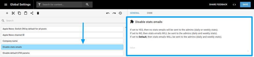Global setting is a centralized general settings applicable to the entire site, allowing for convenient updates from a single location.