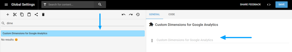 In this field, you can write a JSON string to determine the value and ID of custom dimensions to output in your site's template, and then passed onto Google Analytics.