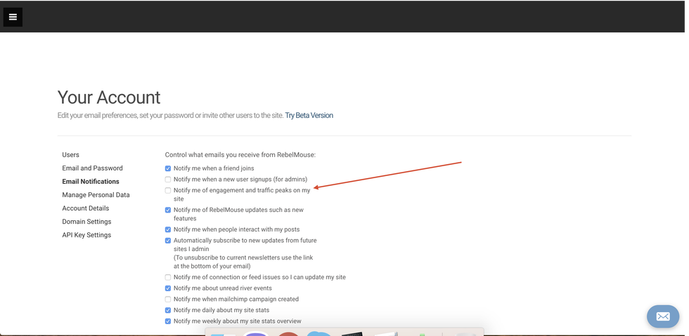 Step 3: Tick the checkbox titled Notify me of engagement and traffic peaks on my site.