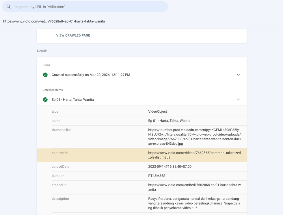 Vidio implemented all of Google Search’s best practices around videos, including the correct structured data markup.