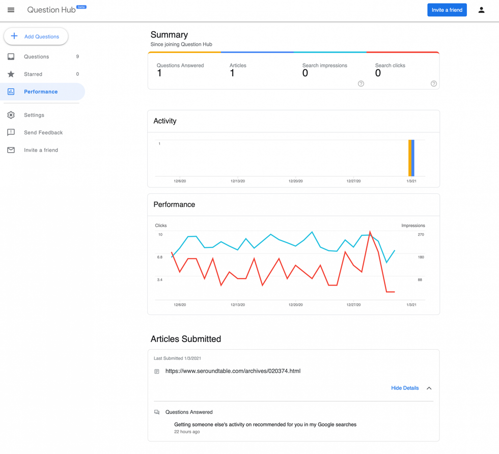 Question Hub also lets you track how your content is doing after you've submitted it.