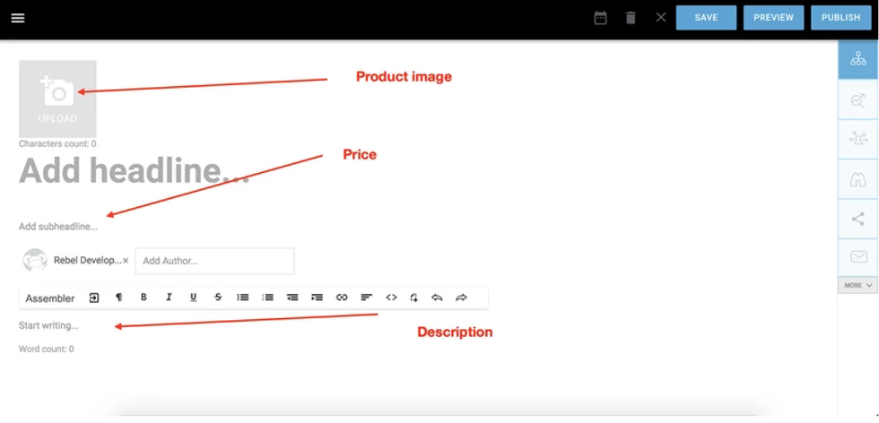 - Categorize your new product post by placing it under a section like Products. (This is to keep your content tidy. You're ultimately in control of how you categorize your content on RebelMouse.)
