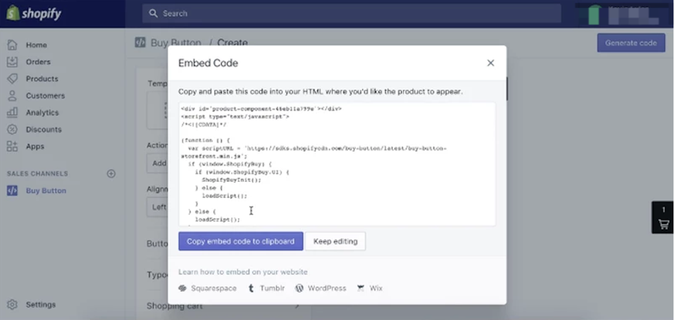 4. Add the Shopify Embed Code (Buy Button) to Your Post