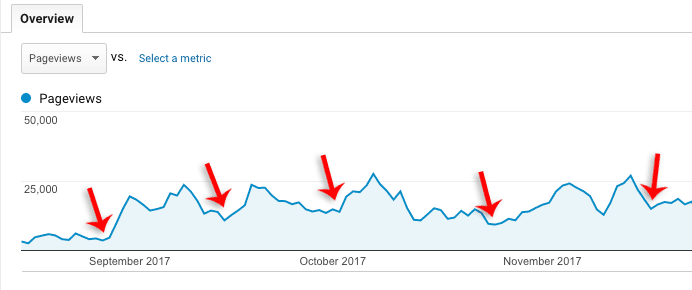 Earlier in this post, we showcased Azula's strong valley growth after three months of being on RebelMouse. Here's a broader look at how Azula has been doing since the end of August 2017.