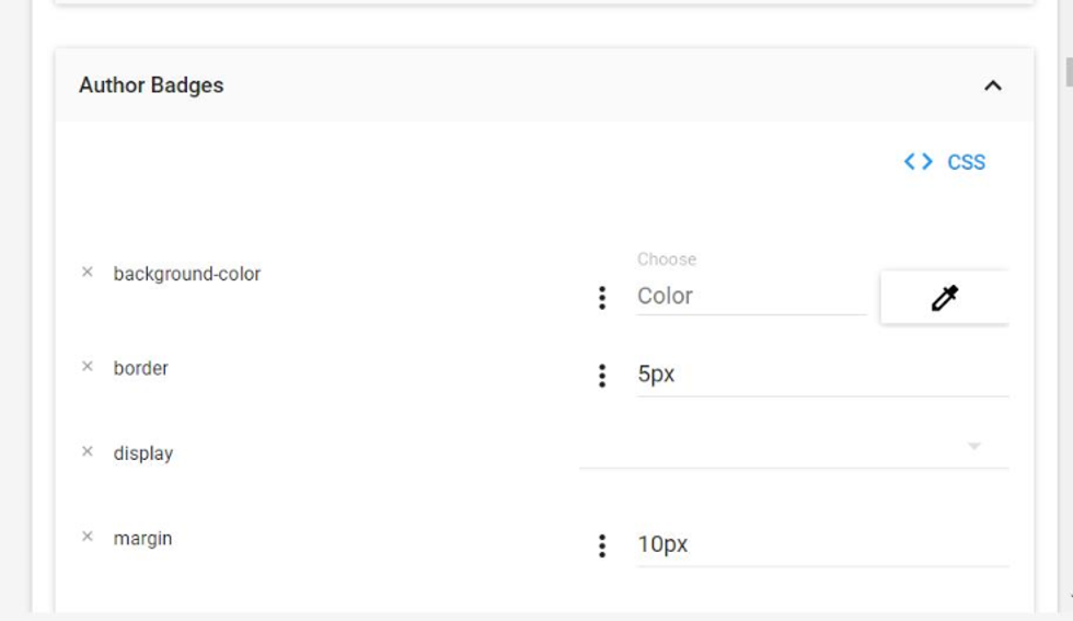 When using a Post element, you also have the option to style your Author Badges using CSS: