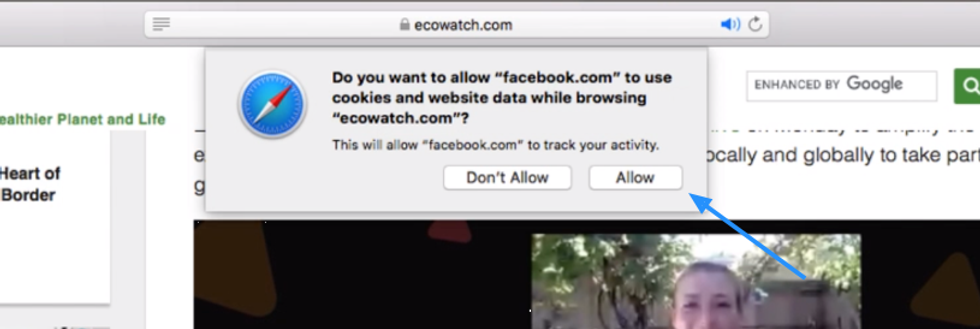 However, your readers can enable Facebook video embeds in Safari by accepting cookies and website data tracking while browsing your site. They can enable this via the Privacy tab within the Preferences menu of Safari, or by accepting the pop-up prompt that appears, as shown in the screenshot below: