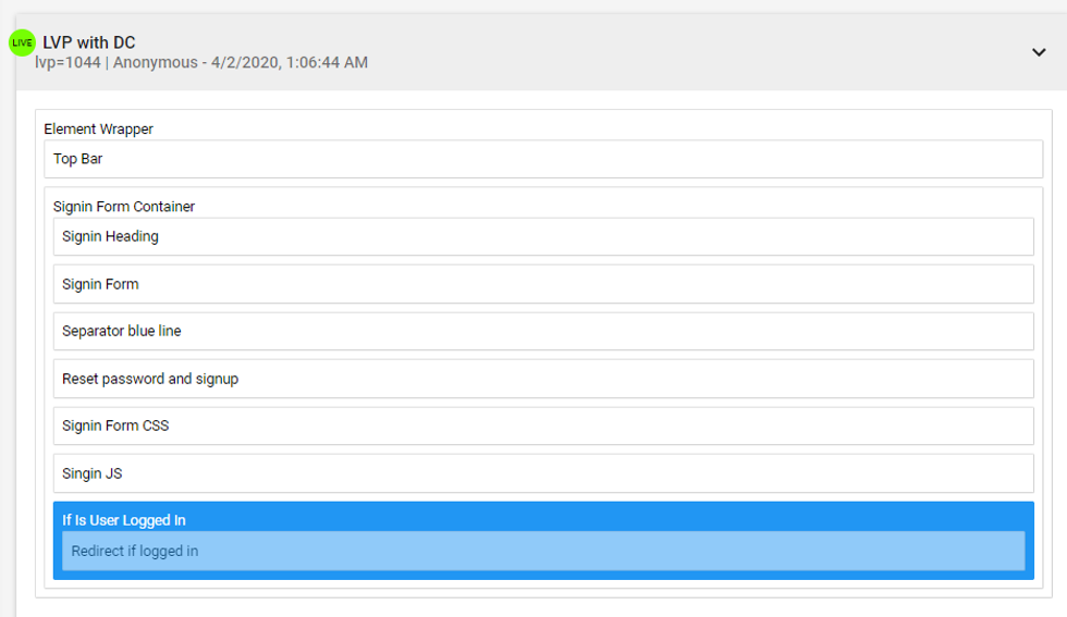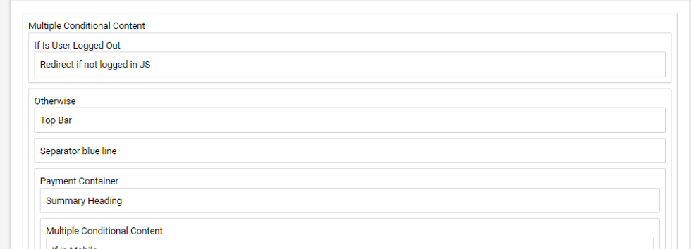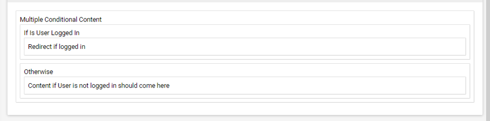 We don't recommend a traditional Conditional element because its placement in your layout will result in a rendered (or partially rendered) page, which can display errors or even break the UX if the user isn't logged in. Note the placement in the following image, where some of the page is rendered before the conditional for a user is checked and resolved.