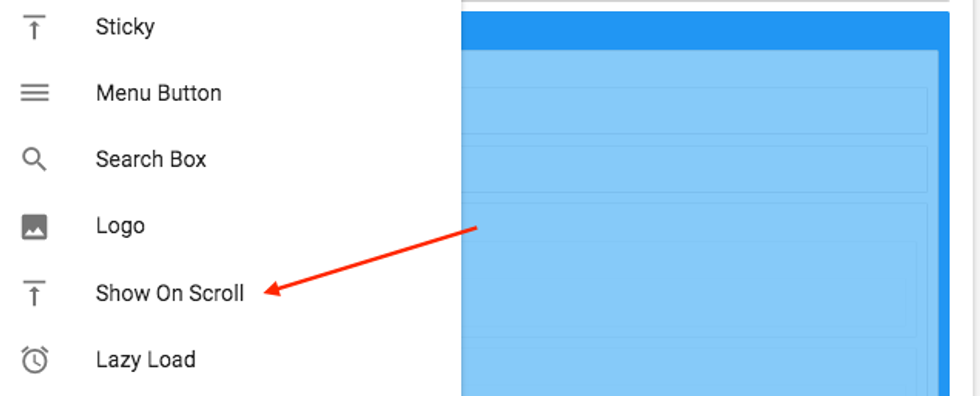 This feature can be added set up in our Layout & Design tool using the Show On Scroll element. Once it's in place, you need to create a placeholder top navigation menu that readers will not be able to see.