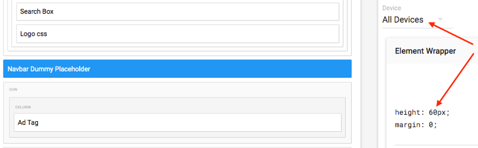 Next, create a fake header as an Element Wrapper. Set it to the same height as the Top Bar for each viewport. (e.g., height: 60px; margin: 0;)